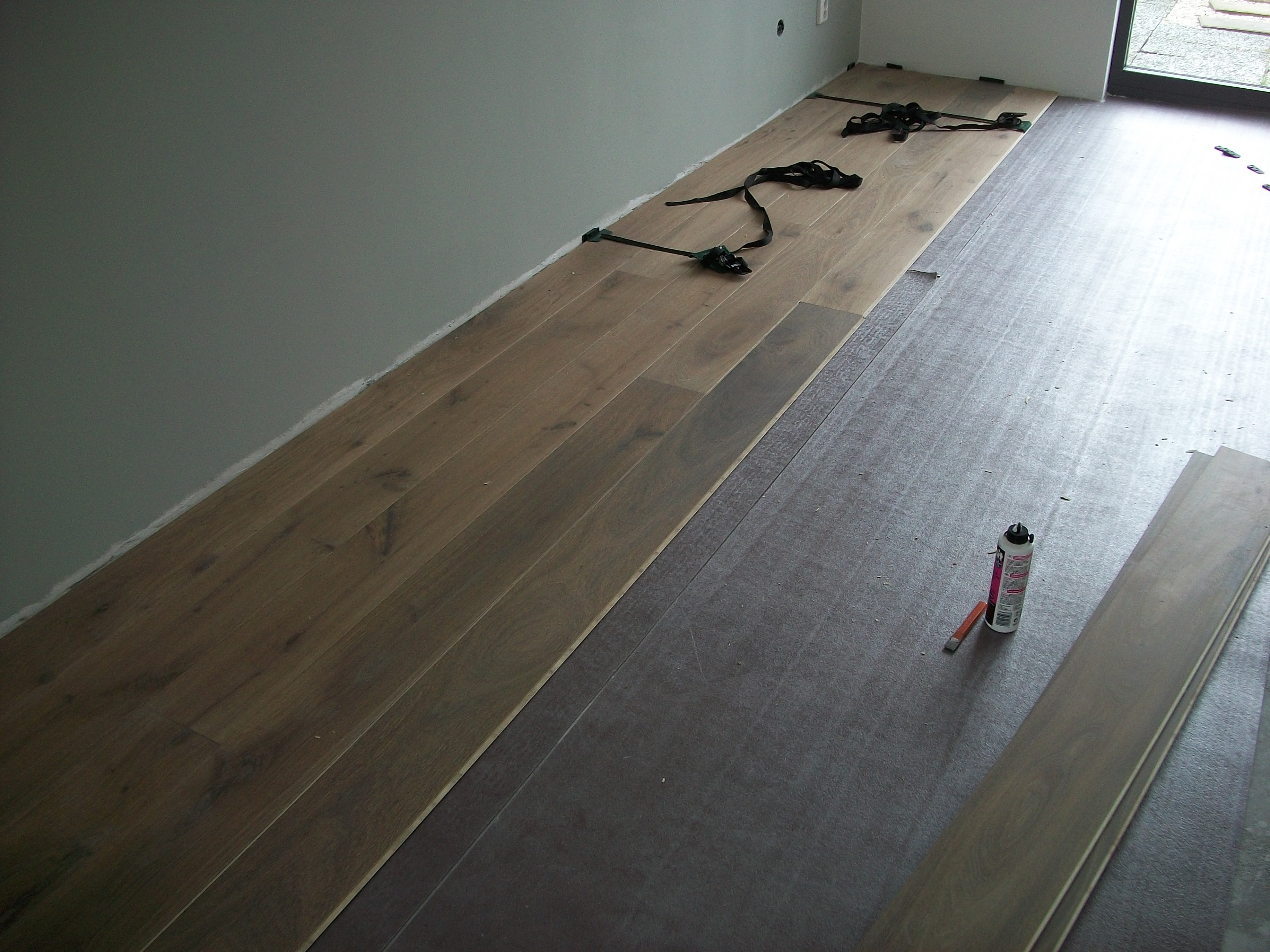 netjes gespijkerd en gelijmd kan worden op de ondervloer. Nadat