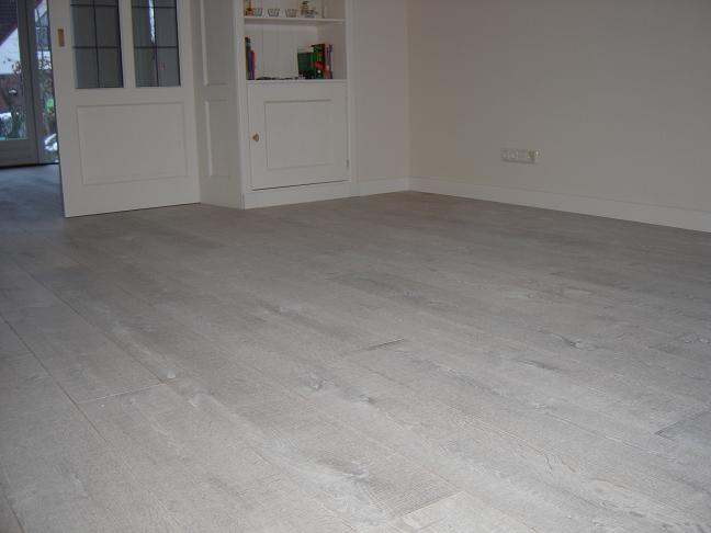 houten vloer is afgewerkt in hardwaxolie extra wit, en is dubbel